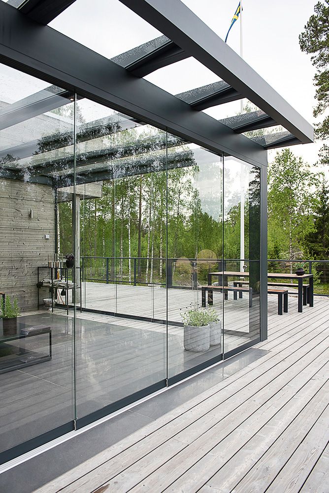 - Een compleet buitenverblijf met glaswanden of houtwerk